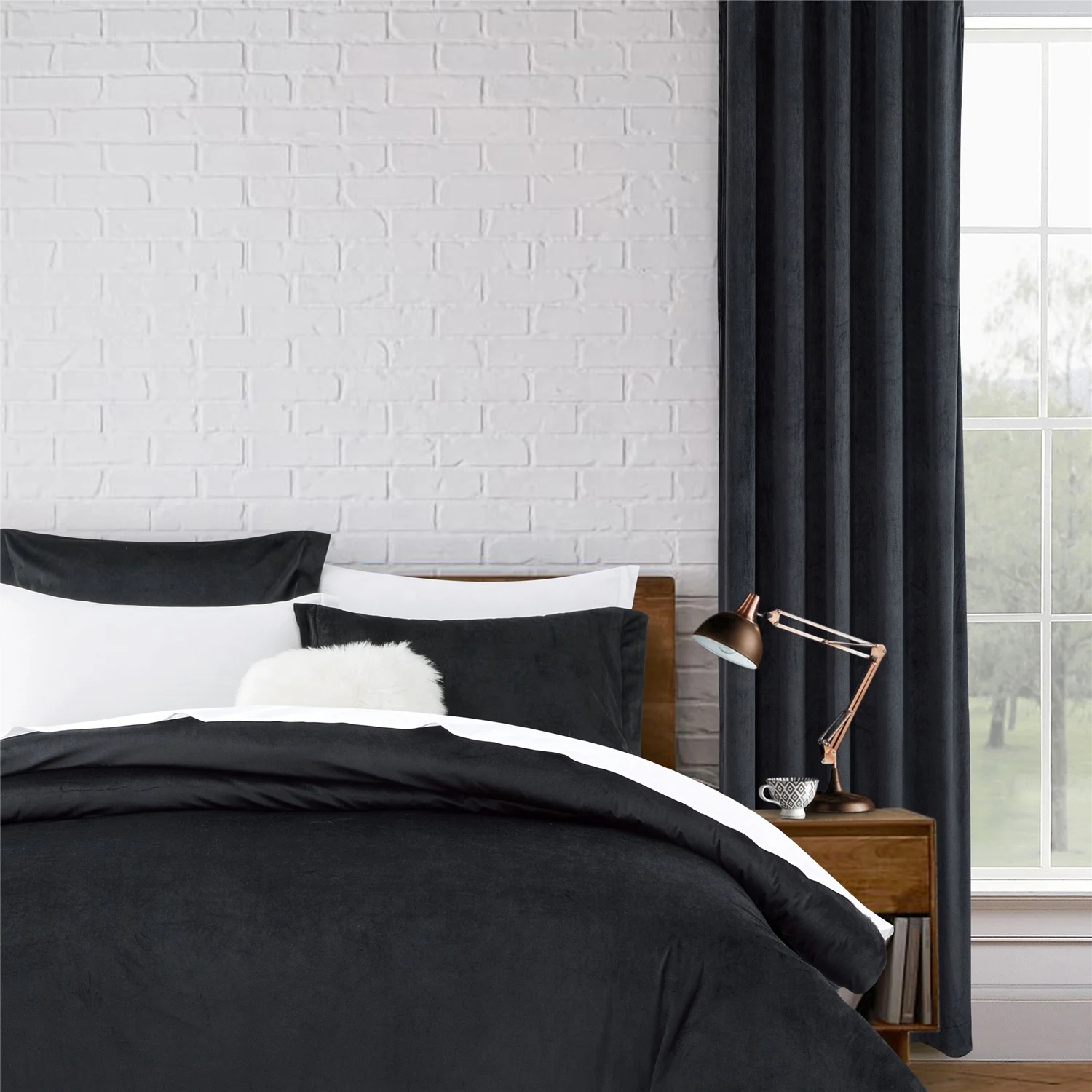 BSCI Manufacturer Direct Sale Velvet Curtain Professional Factory Blackout Velvet Window Curtain with Matching Bedding Set
